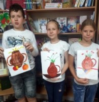 10 серпня у бібліотеці-філії №4 відбулася майстерка «Фабрика емоцій», на якій діти власноруч створювали натюрморт з глечиком та квітами.