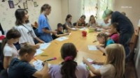 Творче заняття «Готуємось до школи» провели волонтери Товариства Червоного Хреста 31 липня у Центральній публічній бібліотеці. На нього традиційно щосереди приходять вихованці Центру раннього розвитку «Мудрик».