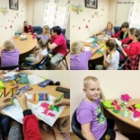 Цього ж дня у філії №11 з волонтерами діти робили з кольорового паперу органайзер для канцелярії.