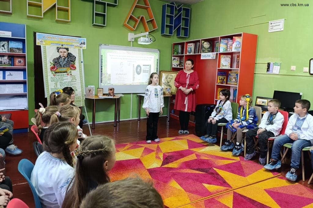 Не менш важливою стала частина заходу, де діти декламували вірші, демонструючи власні навички виразного читання. Бібліотекарка акцентувала на зв’язку Шевченка з Хмельницьким: хоча поет тут ніколи не був, його ім’ям названі бібліотека, одна з центральних вулиць, кінотеатр, парк, товариство «Просвіта», що свідчить про шану до його спадщини.