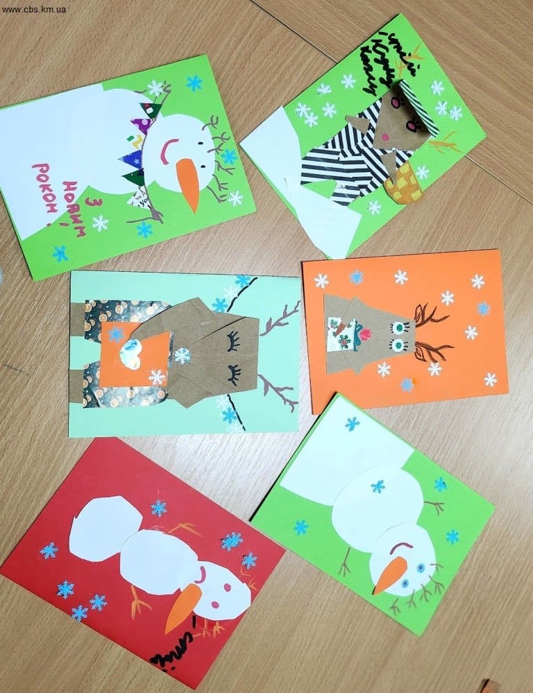Діти обирали фон, вирішували, хто стане головним героєм роботи, та уважно вирізали деталі, поєднуючи кольори й форми. У роботах з’являлися як сніговики з усмішками, морквяними носами та гірляндами, так і різдвяні олені з ріжками та святковими прикрасами й подарунками.