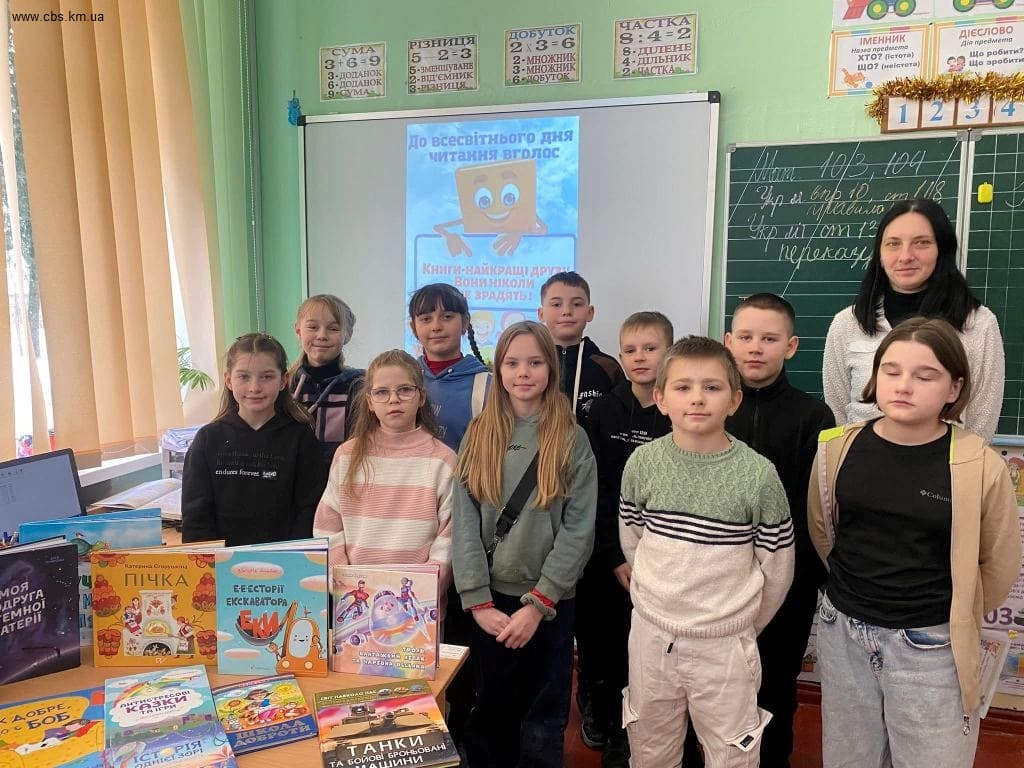 Для школярів оформили книжкову виставку «Читаємо разом — мріємо разом», де представили цікаві, пізнавальні та яскраві дитячі видання. Бібліотекарка розповіла про значення свята та пояснила, чому читання вголос таке важливе: воно допомагає краще розуміти текст, розвиває мовлення, уяву та вчить уважно слухати одне одного.