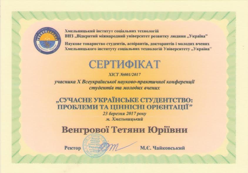 23 березня завідуюча бібліотекою-філією №11 Венгрова Тетяна стала учасницею Х Всеукраїнської науково-практичної конференції студентів та молодих вчених «Сучасне українське студентство: проблеми та ціннісні орієнтації». Під час конференції було висвітлено актуальні проблеми навчання, виховання, професійної та соціально-психологічної адаптації, шляхи вирішення соціально-економічних питань, які стоять перед молодою людиною сьогодні.
