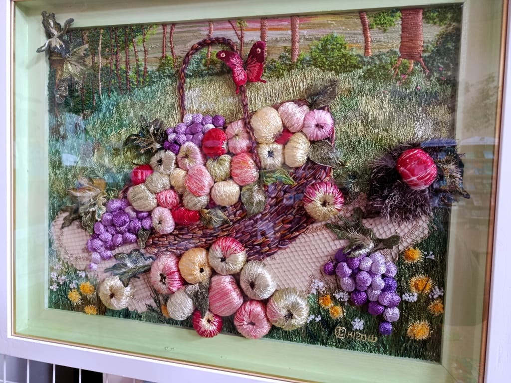 Її роботи — мов тихі історії, вишиті ниткою: ніжні, глибокі, сповнені світла й душевного тепла. У кожному творі — любов до краси, природи та рідного краю.
